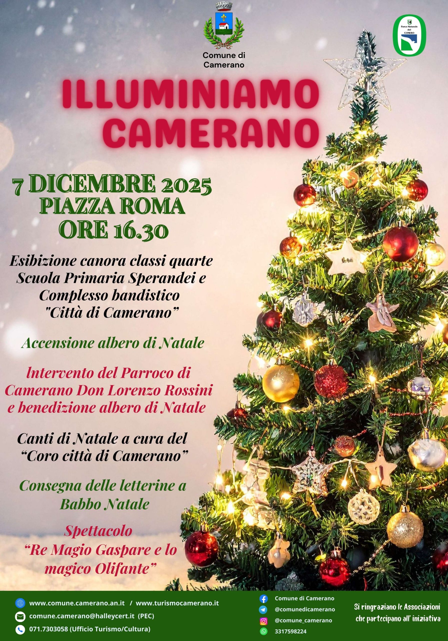 Il Comune di Camerano invita la cittadinanza a partecipare all’iniziativa “Illuminiamo Camerano”, tradizionale appuntamento dedicato all’avvio delle festività natalizie.