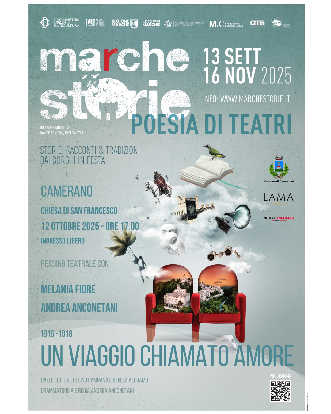 Nella suggestiva cornice della Chiesa di San Francesco di Camerano, domenica 12 ottobre 2025 alle ore 17.00 si terrà il reading teatrale “Un viaggio chiamato amore”, con Melania Fiore e Andrea Anconetani.
